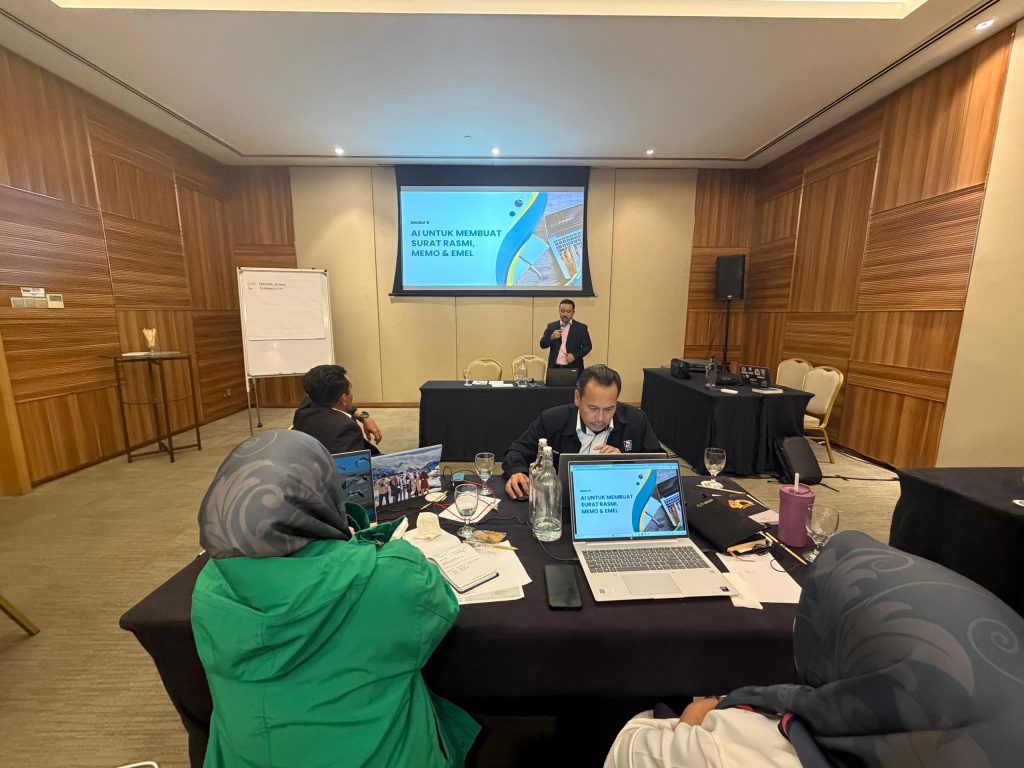 1 hari latihan lengkap dengan 5 modul cara guna AI untuk menaikkan produktiviti kerja pejabat peserta.